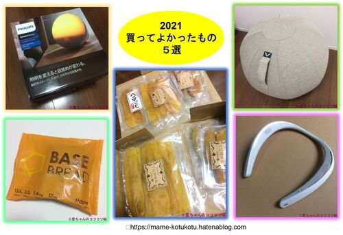 2021年に買ってよかったものは 1位目覚ましライト 2位ベースフード 3位ネックスピーカー 4位シーティングボール 5位幸田商店の干しいも